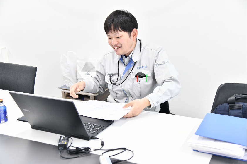 コロナの影響で失業してしまったのですが、知り合いのお父様が匠電設さんと知り合いで、その方の息子さんが先に入社して、その後に自分も誘ってもらい、入社に至りました。