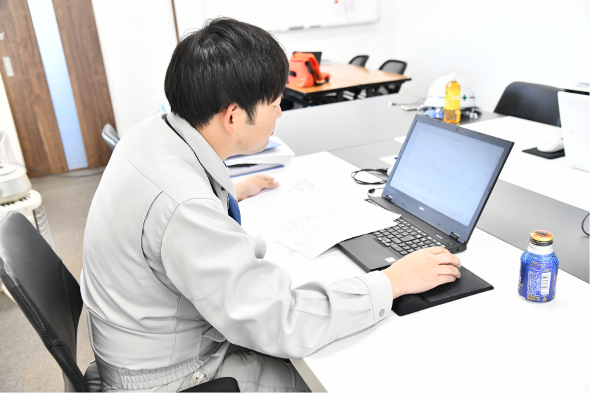 現在は、現場代理人をしています。具体的な仕事内容は、図面を書いたり、設計と打ち合わせをし、お客様のご要望に応えつつ、現場で職人さんが仕事を進めやすいように環境を整える事をしています。